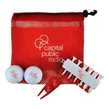 Mini Mesh Golf Kit – This golf kit offers 4 opportunities for branding: a 4″x2 1/2″ Mini Mesh bag, a 2 1/2″x1/2″ tee set, a 1/2″ dia. ball marker, and a 3/4″x1/2″ divot tool. The bag comes in your choice of seven vibrant colors, with 2 golf balls, for $ 6.99 to $8.59.