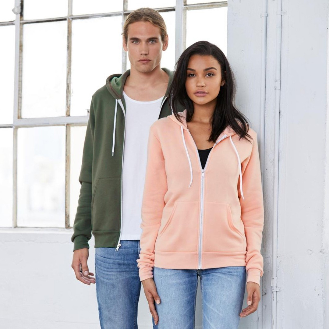 Unisex Poly-Cotton Fleece Full-Zip Hoodie. Superior for screen printing and other embellishments, perfect to show off your brand.