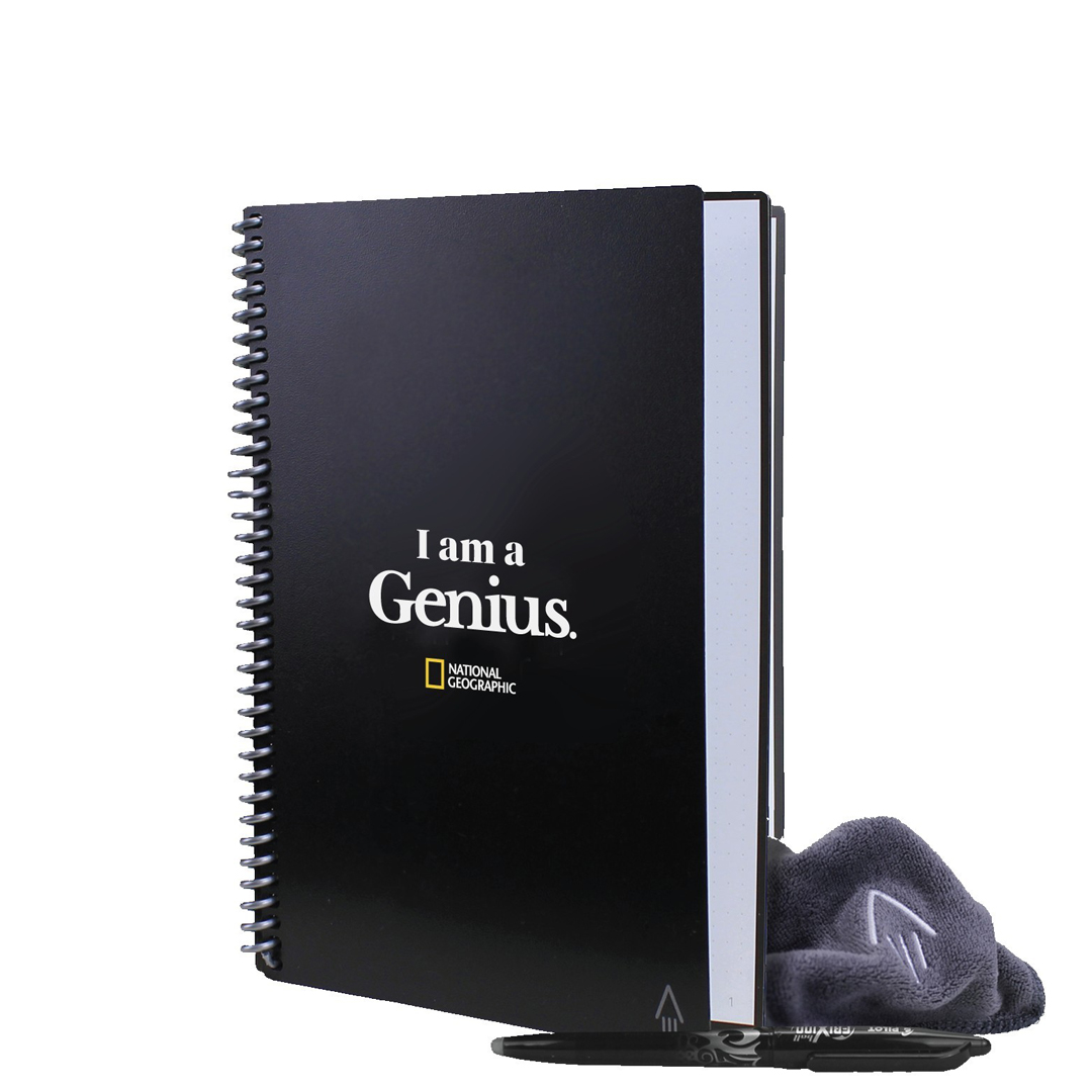 It feels like a traditional notebook, yet the Everlast is endlessly reusable and connects to all of your favorite cloud services. This notebook provides a classic pen and paper experience, yet is built for the digital age. Write using any pen from the Pilot FriXion line, and your writing will stick to Everlast pages like regular paper. Add a drop of water to the microfiber cloth (included) and wipe away your notes like magic! Definitely a great eco friendly product.
