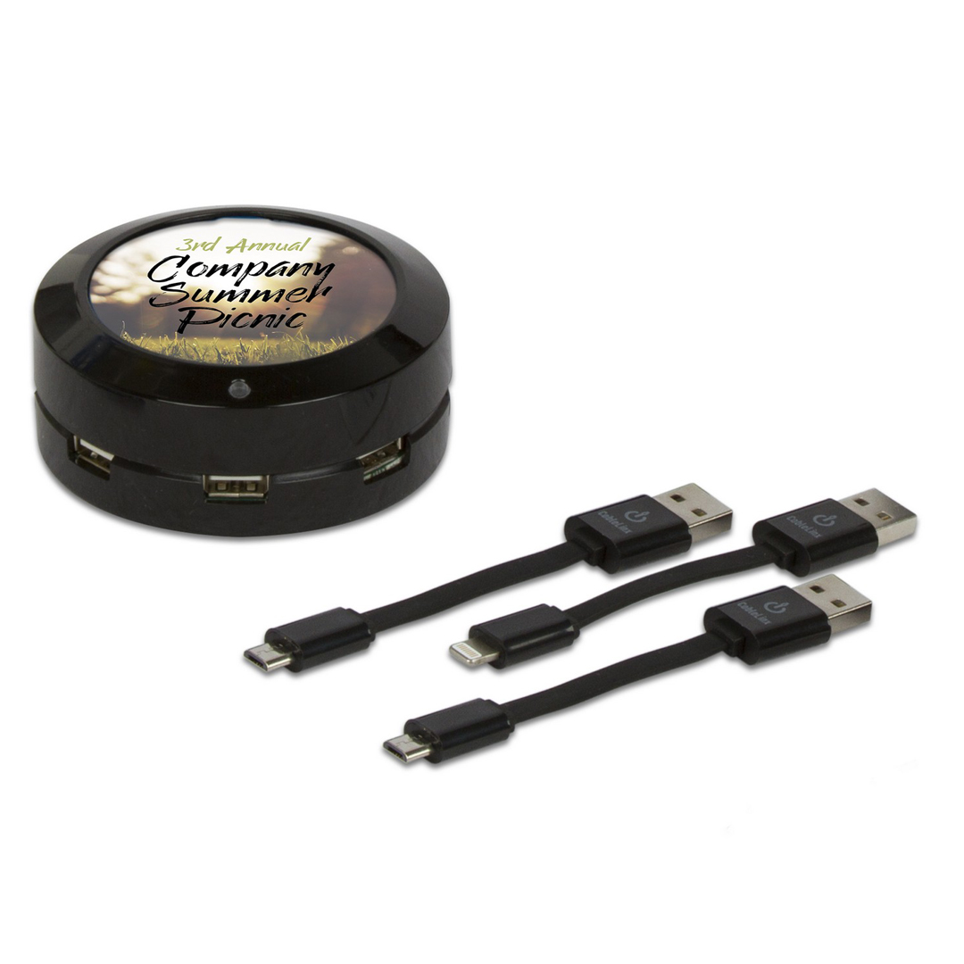 The ChargeHub SVP, previous winner of BEST of CES ( Consumer Electronics Show), is a 3-Port USB Super Charger! Now the ability to charge 3 devices at once, from one power supply, the Super Value Pack offers customization with your logo and all the incredible features of the Standard Pack PLUS 2 Micro to USB Cables and 1 Lightning Cable.